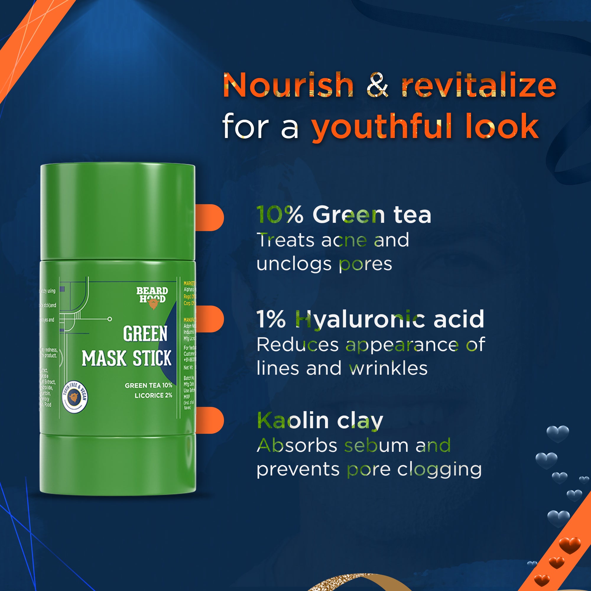 Green mask stick - Purified Aqua, Kaolin Clay, Witch Hazel Extract, Titanium Dioxide, Refined Glycerine, Activated Charcoal, Propylene Glycol, Cocamidopropyl Betaine, Aloe Vera Leaf Extract, Green Tea Extract, Stearic Acid, Sodium Hydroxide, Niacinamide, Vegetal Hyaluronic Acid, Allantoin, Ethylhexylglycerin, Phenoxyethanol, IFRA Certified Fragrance, Sodium Gluconate